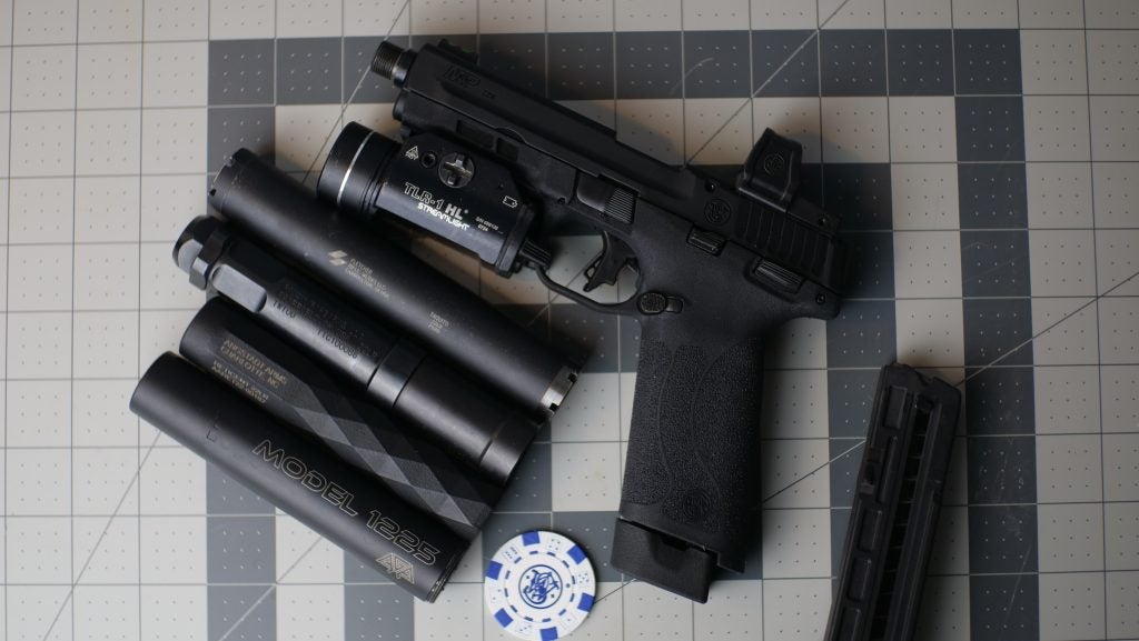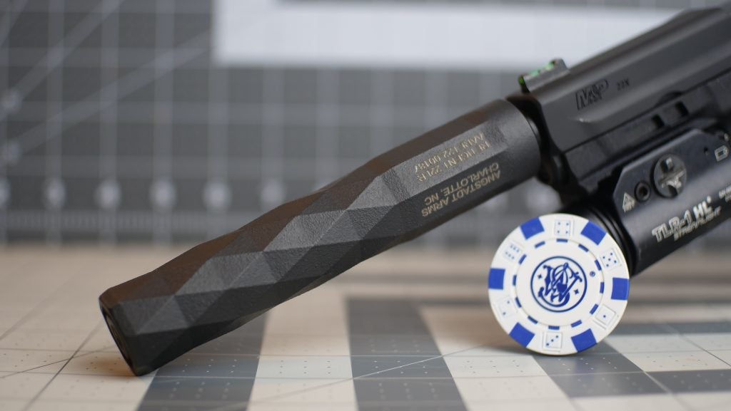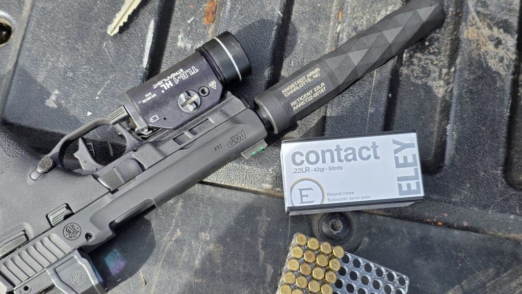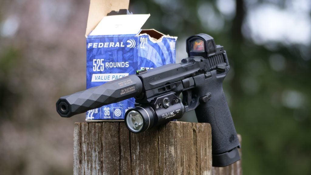 If you’re new to suppressors, .22 LR cans are your best friend. They work great on popular rifles like the Ruger 10/22 or pistols like the new Smith & Wesson M&P 22X, and the ammo costs next to nothing, even during ammo shortages and price spikes.