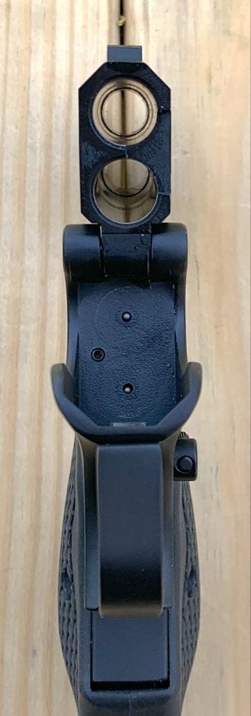 About the trigger…It says in the owner’s manual for the 250th .45C/.410 that its trigger needs to be pulled by the pad of your trigger finger, not the first joint. The trigger needs to come back and down, not just straight back. The Cyclops didn’t seem to have this recommendation. It took me a while to get used to that different type of trigger pull, but once learned, it’ll become automatic.