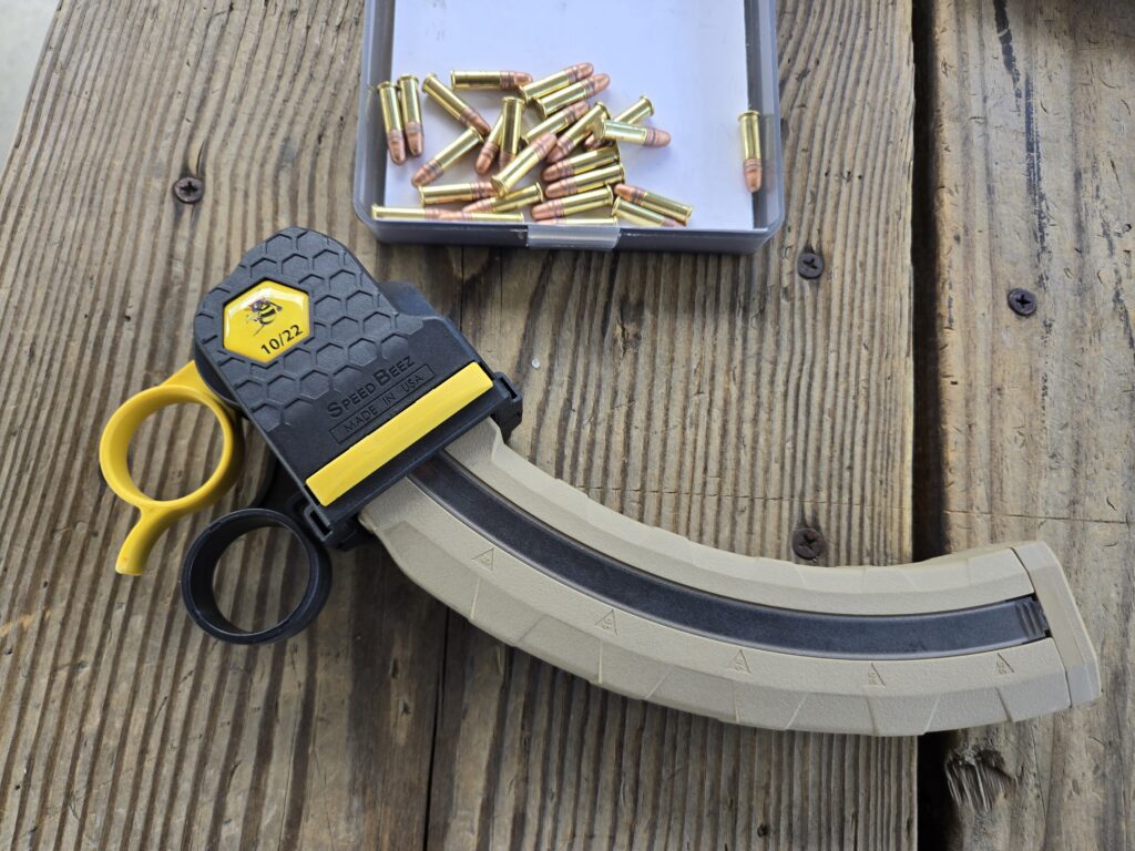 The BX-25 performed well and generally ran fine. I found, though, that the High Tower Armory mags were a little more consistently reliable. I used a Speed Beez Lever Loader for much of my shooting with the F22. After the first session and manually loading a bunch of 25-round mags, I picked up the loader, which made things go a lot faster. Not to mention easier on the fingers.