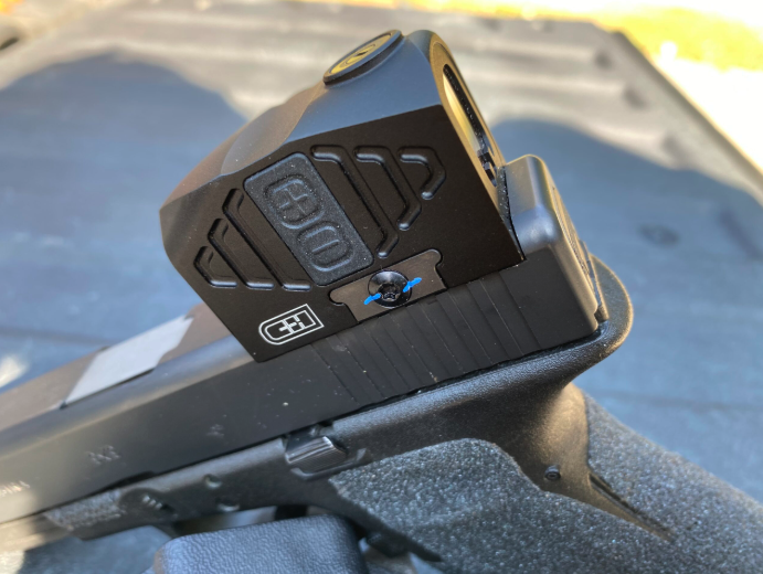 - Optic: Slide milled by C&H Precision and fitted with their Duty Optic, a closed-emitter reflex in the Aimpoint-ACRO class. This is a duty-grade optic: one-piece CNC aluminum, IPX7 waterproof, fully shockproof for +P use, featuring a 3 MOA dot that stays crisp even with mild astigmatism, ten brightness levels (two NV compatible), motion-sensing wake, and a long-lasting CR2032 battery. It’s bigger than a micro-dot, but it’s built for hard use and clear, fast acquisition.