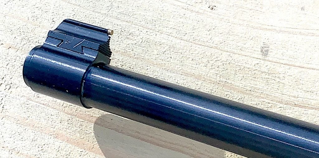 A brass bead decorates the front sight. I’ve shot many 10/22s with their open sights.
