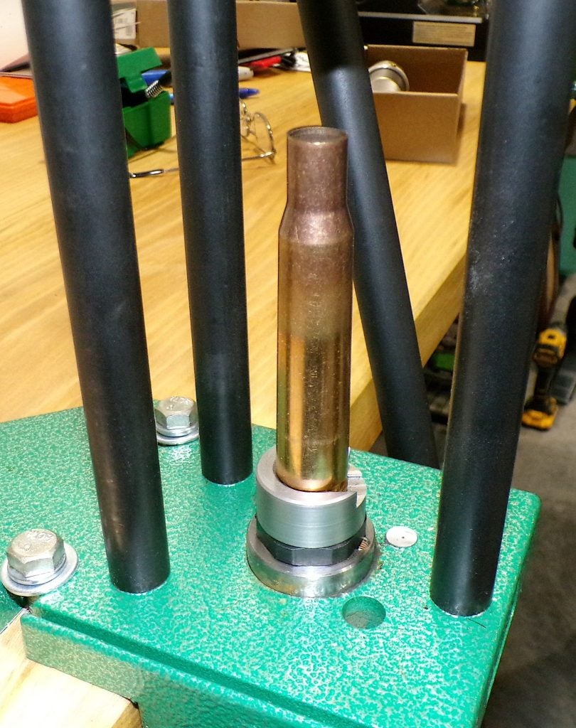 - Place a .510” bullet in the case mouth after swapping the resizing die for the bullet seater.