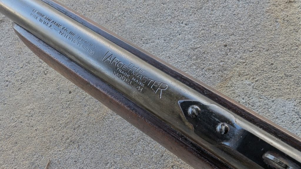The Model 41 is a reasonably simple rifle, but it’s representative of America at the time. The Model 41 was introduced in 1936 and produced through 1939.