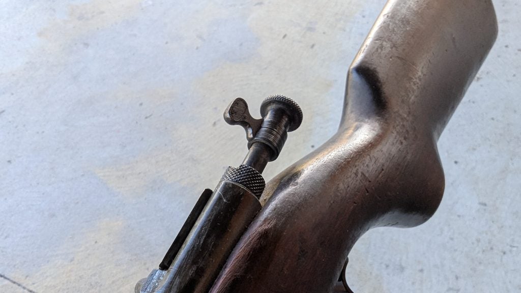 Shooters must manually pull the striker back to cock it. The gun features a rotating safety on the bolt. In the up position, it blocks the sights and indicates that the safety is on. Push it to the left, and the gun is ready to fire. It’s not fancy at all, and this type of simple rifle was popular in this era.