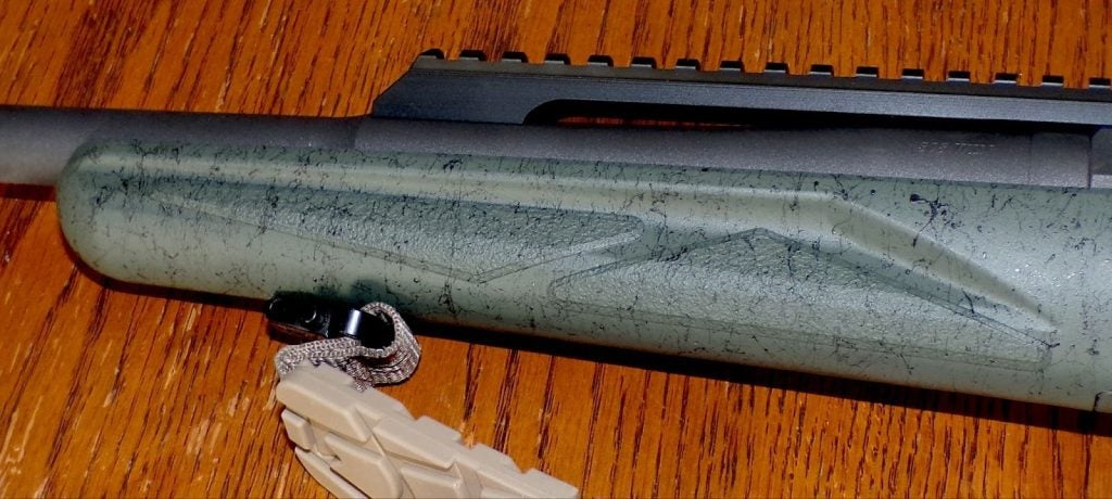 It is the embodiment of Cooper’s Scout concept, built with those characteristics firmly in mind. Having it built on Ruger’s Gen II American platform is even better, with the improved adjustable trigger, a buttstock that can be shortened for shooters of smaller stature, and a snap-on comb height adjuster. (I admit that I like the way the black comb adjuster looks on the green rifle stock… mine will stay there. It will become very useful when I put an optic on the gun.)