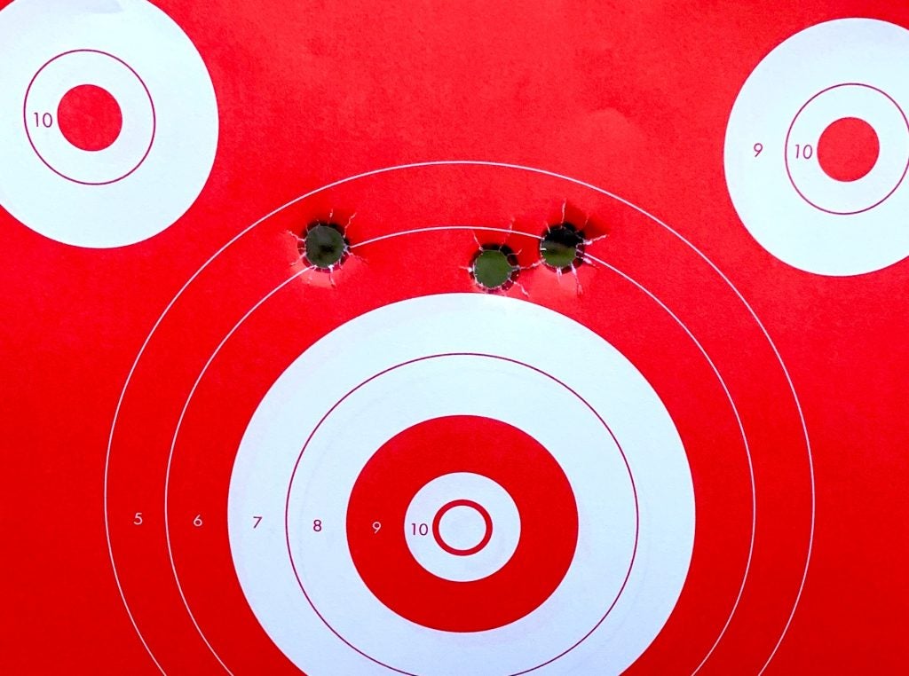 This target of the 240-grain JHP is unique… we see three holes, but he shot 5 times. I wouldn’t think he went over the target, but you never know… at least there are three holes! This was about all the shooting his hands could stand… prodigious recoil!