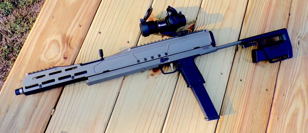 The world of folding pistol-caliber carbines has grown by leaps and bounds over the past few years. Once upon a time, if you wanted a long(er) gun in 9mm, you were pretty much limited to AR-pattern rifles. These did not fold, nor were they particularly handy. They are still out there, and they serve a purpose… training someone to use an AR is easier if you can start them off shooting .22LR or 9mm. 5.56 mm can come later.