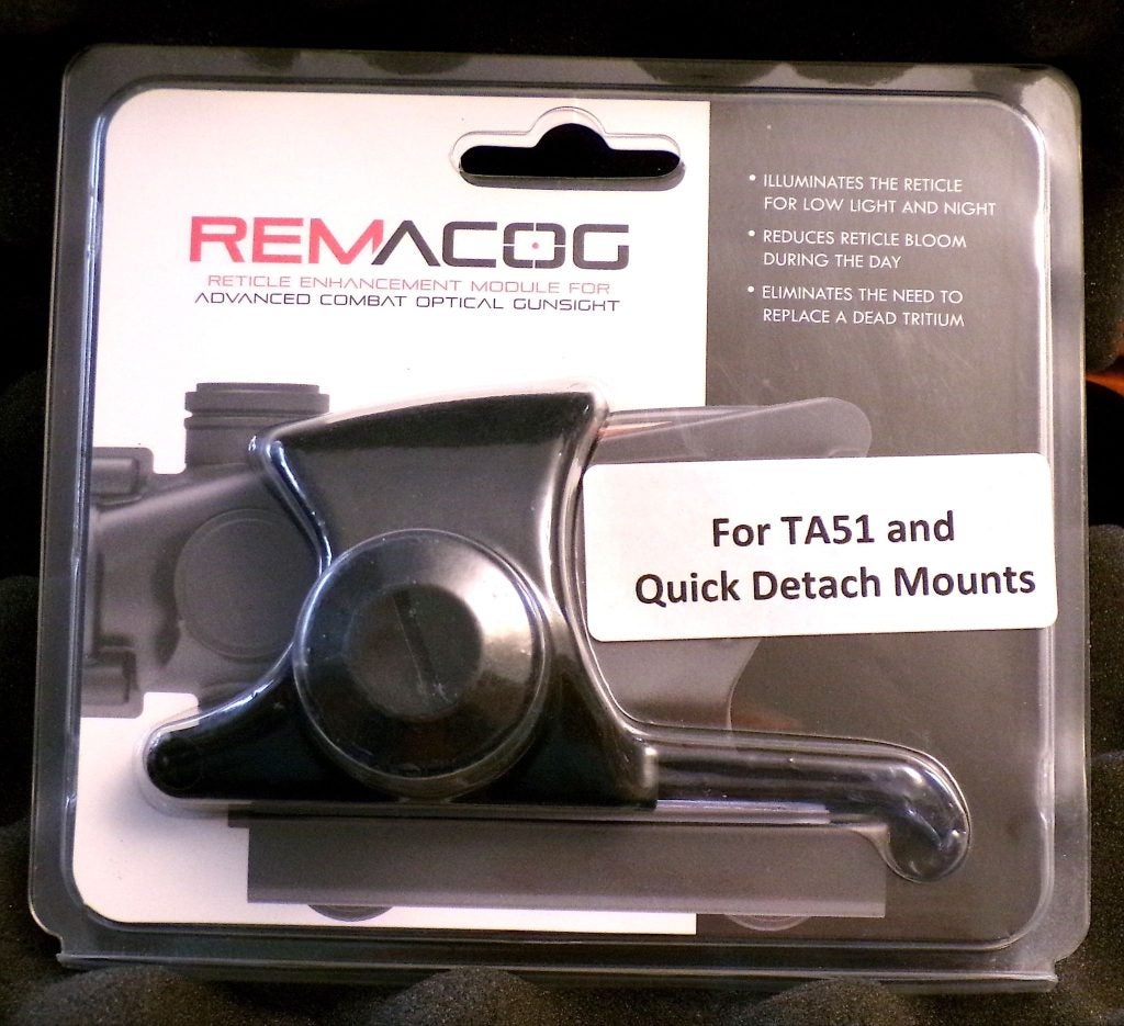 In terms of customization, I was sent an illuminator by fellow TTAG writer Tim Stetzer. This is useful if you are using a non-battery-model ACOG. It wraps around the scope and “brightens up” the reticle, if the scope has need of that. Here it is:
