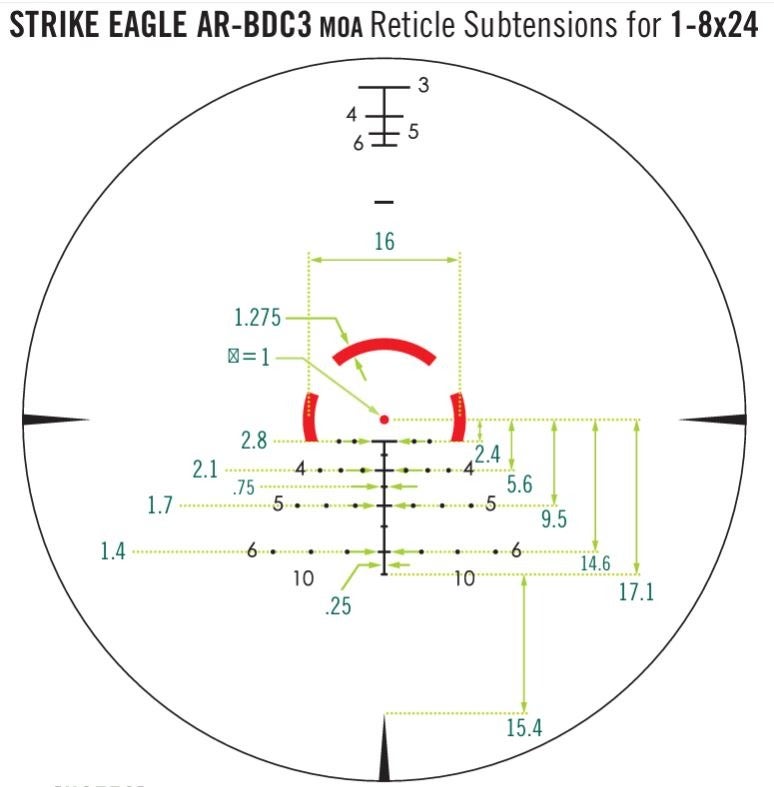 The Strike Eagle uses an AR-BDC3-SFP reticle, pictured here from its website…