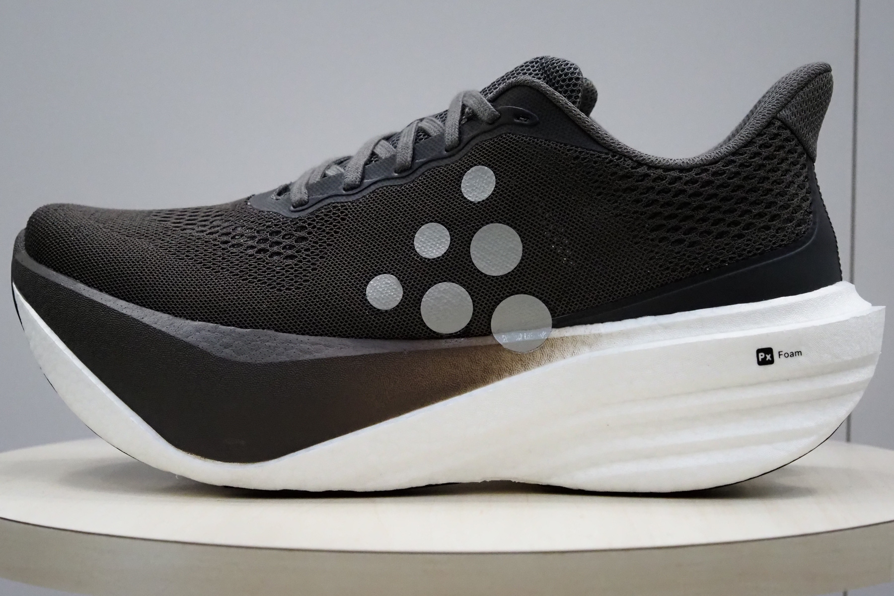 This max-speed shoe weighs in at about a scant 7 ounces for a men’s size 9, and carries a technical outsole designed by Vittoria. Its aggressive 8mm drop should help keep the pace up, while the midsole employs a combination of Craft’s new high-energy Xx foam and its Px foam.