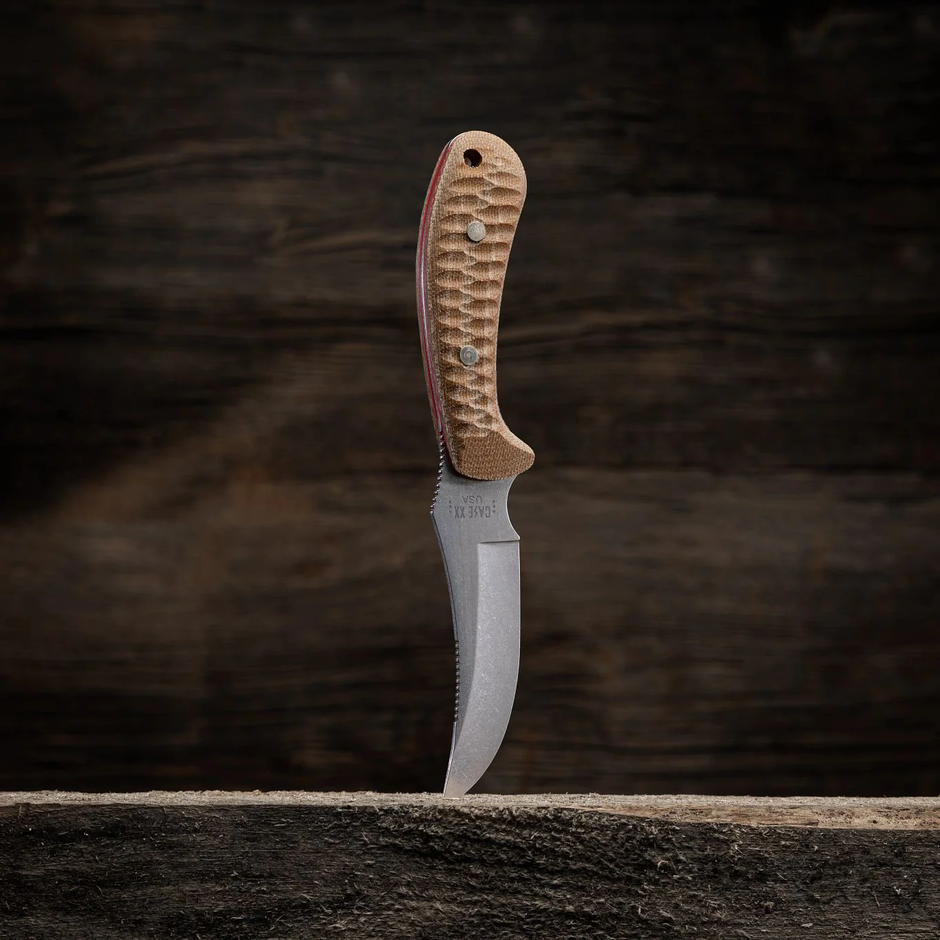 A stonewash satin stainless steel blade with a swept skinner profile looks and feels like a big knife, but its hunting-specific design means that it can handle the detail work of skinning in the field, no problem. An ergonomic thumb grip keeps your hands steady when you’re focusing on your catch, and Case’s new sculpted handles safeguard a solid grip, even in the gnarliest weather.