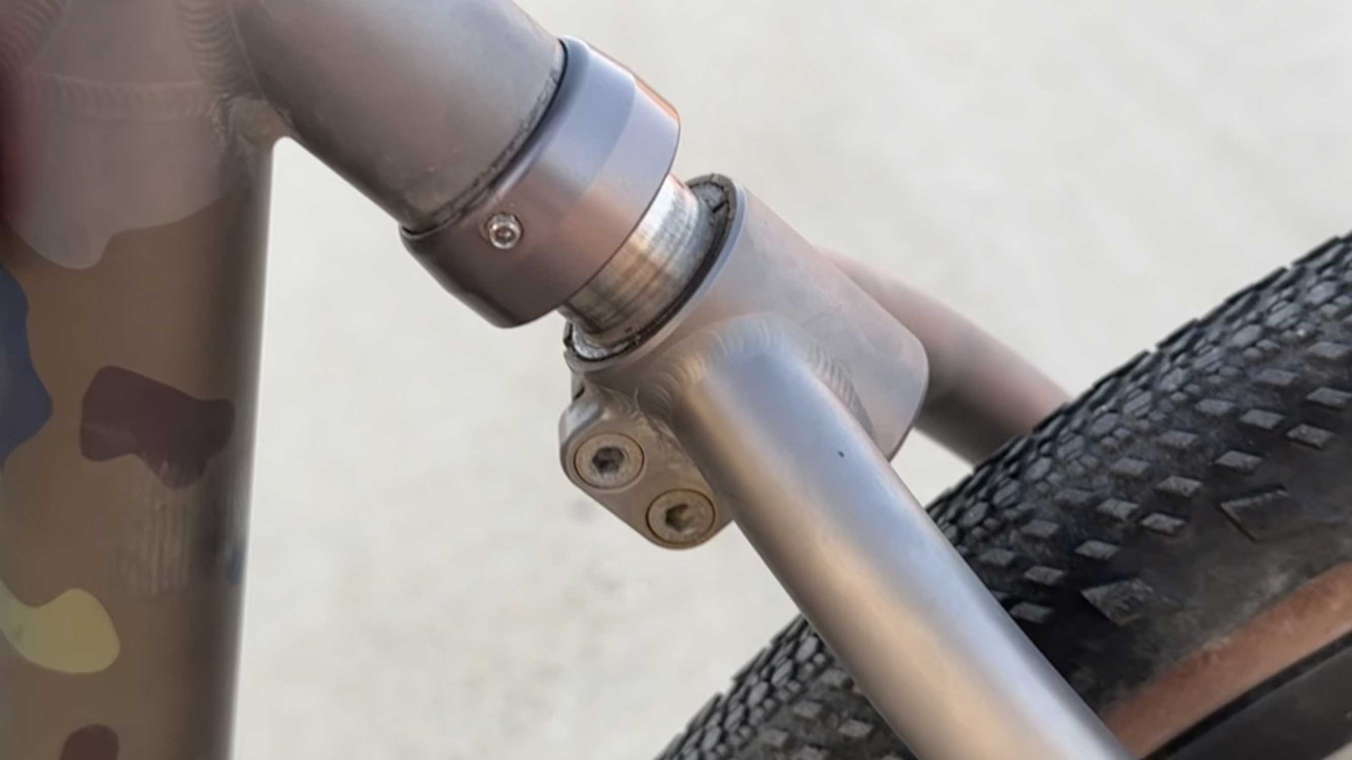 My only ding is really the ding I put on the bike. Even though the bags were strapped to the frame with rubber padded straps, they took their pound of patina. The bead-blasted surface started to wear down at the touch points, and I would recommend taping the contact points on the tubing or leveraging the mounts on the bike. For $900, Moots offers a refurbishing service that can rebrush the frame back to new.