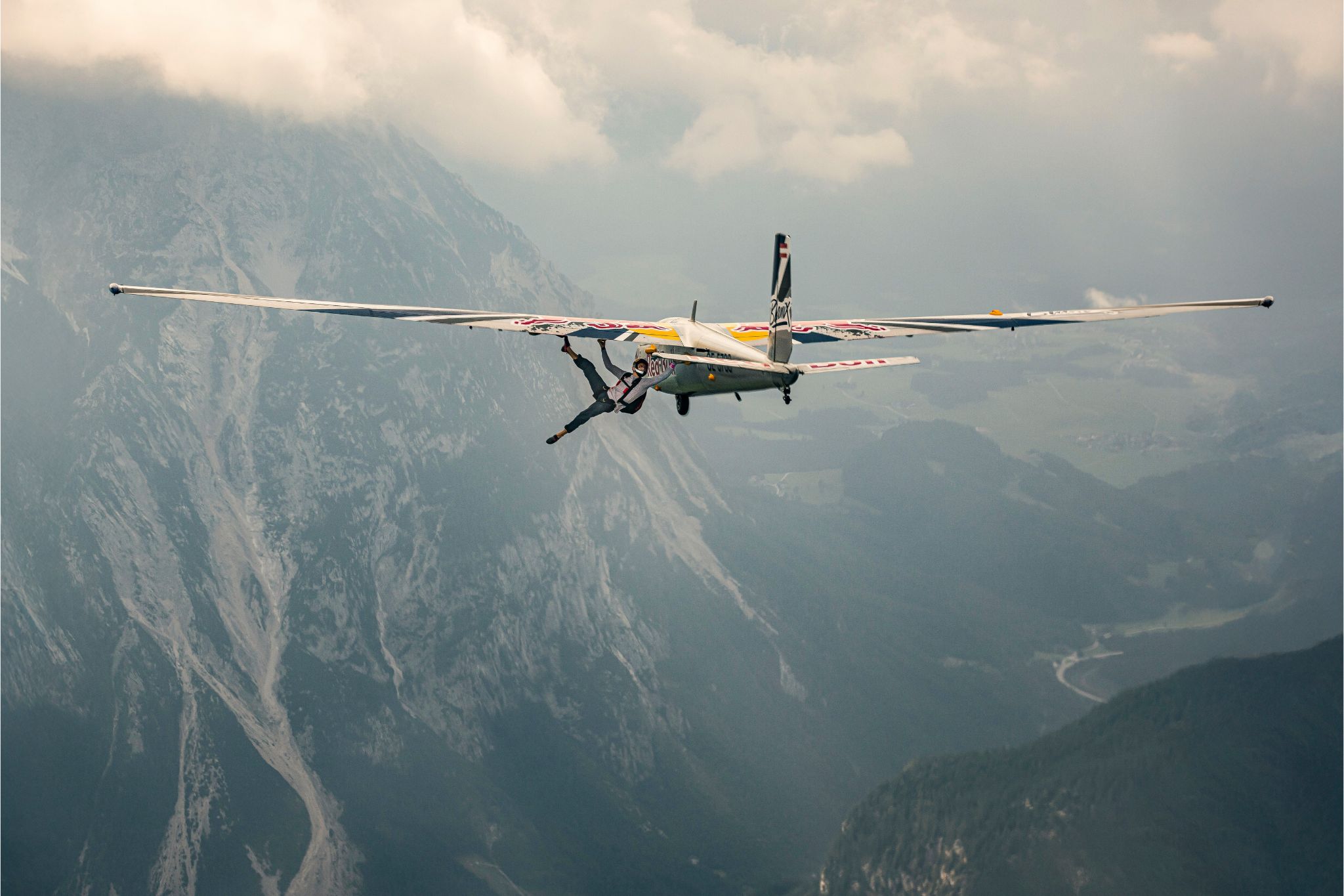 When the plane hit around 8,200 feet over Austria, Škofic exited the cockpit and began climbing the figure-eight route that traversed around the wings of the plane. After roughly a minute of climbing, Škofic backflipped off the plane and parachuted down.