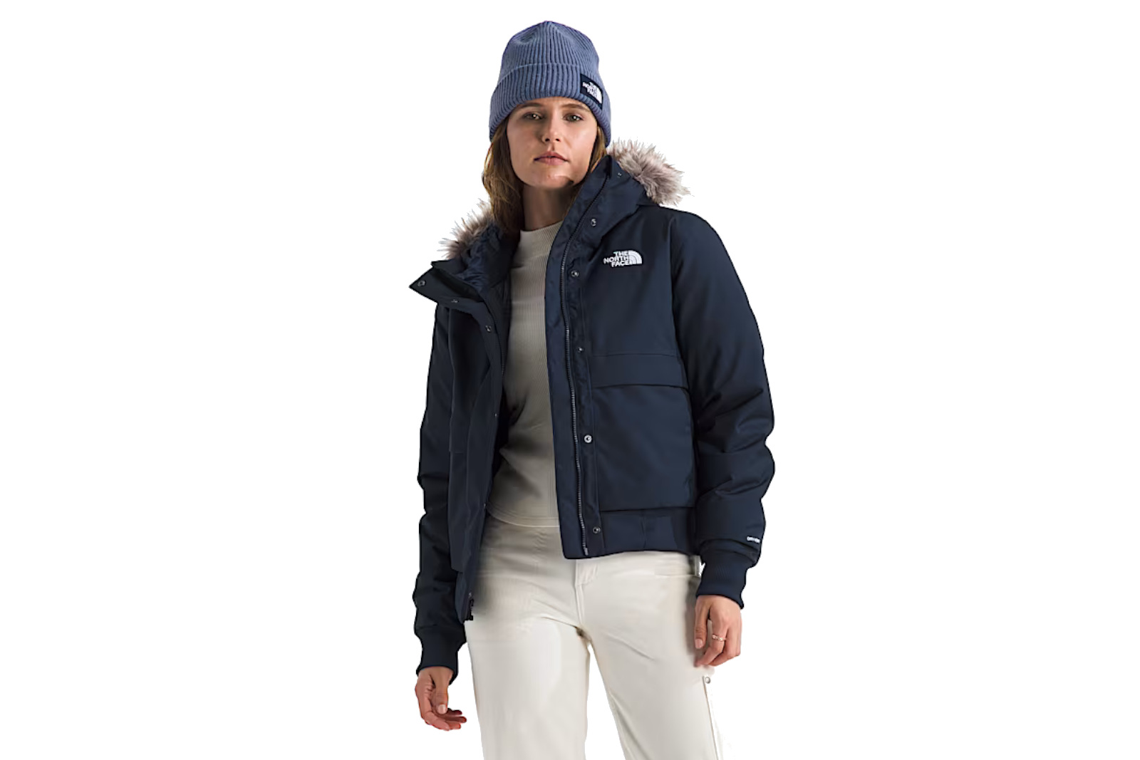 New to The North Face’s Arctic Parka line, the Women’s Arctic Bomber introduces a slightly shorter silhouette with all the warmth and weather protection you’d expect. The jacket has 600-fill recycled down insulation and ribbed cuffs and hem to keep you cozy. And its 100% recycled DryVent body fabric is waterproof, wind-blocking, and breathable with a durable finish that beads water on top.