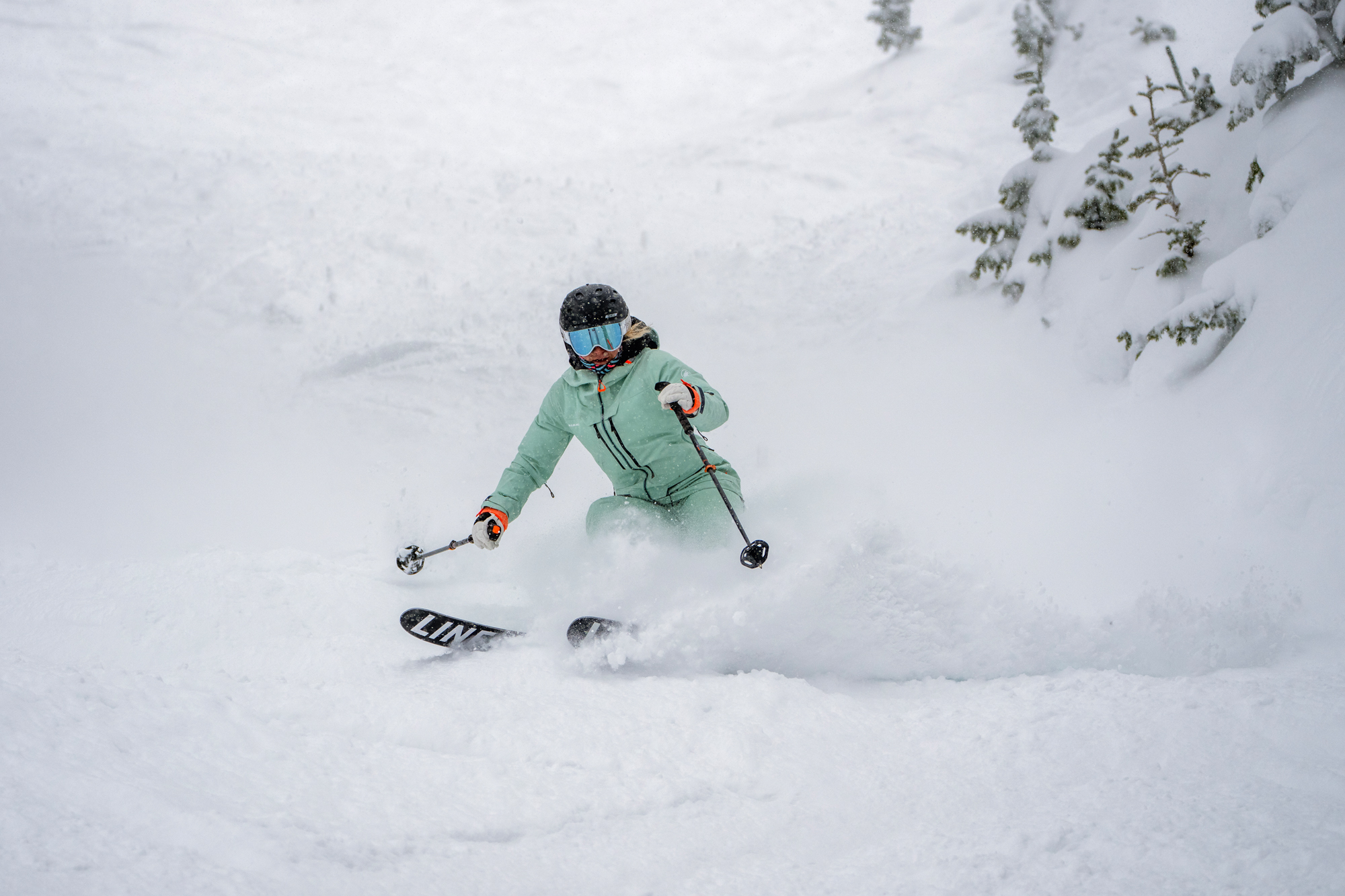 In contrast, a wider ski can be more difficult to get on edge in firm conditions. That said, there can be benefits to a wider ski, like Line’s Pandora 106, even in hard-packed conditions. Wider skis are often more stable in variable terrain and snow conditions. In soft snow and deep powder, more surface area translates to more floatation.