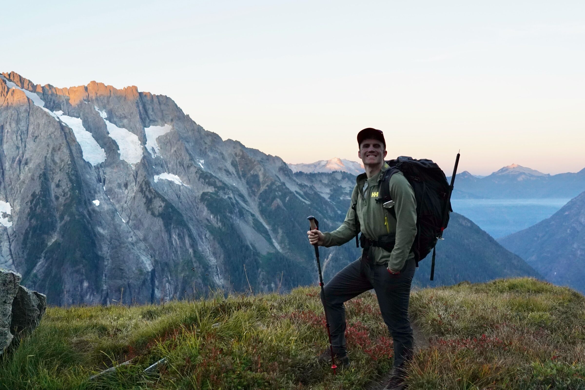 Testing Helly Hansen’s durable, weather-resistant Cascade Shield Jacket on a perfectly appropriate mountaineering trip in the Northern Cascades; (photo/Heather Rochfort)
