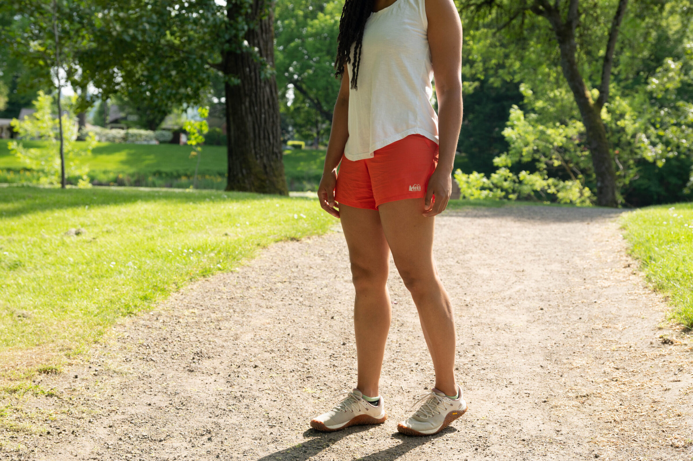 Additionally, taking individual choice into consideration, a person’s height will affect where shorts will fall on them. A 5″ inseam could feel too lengthy on a petite person, and vice versa. Shorts with a 2” inseam will feel more like underwear on you if you’re tall. We like shorts that come with inseam options because they work for a wider variety of women.