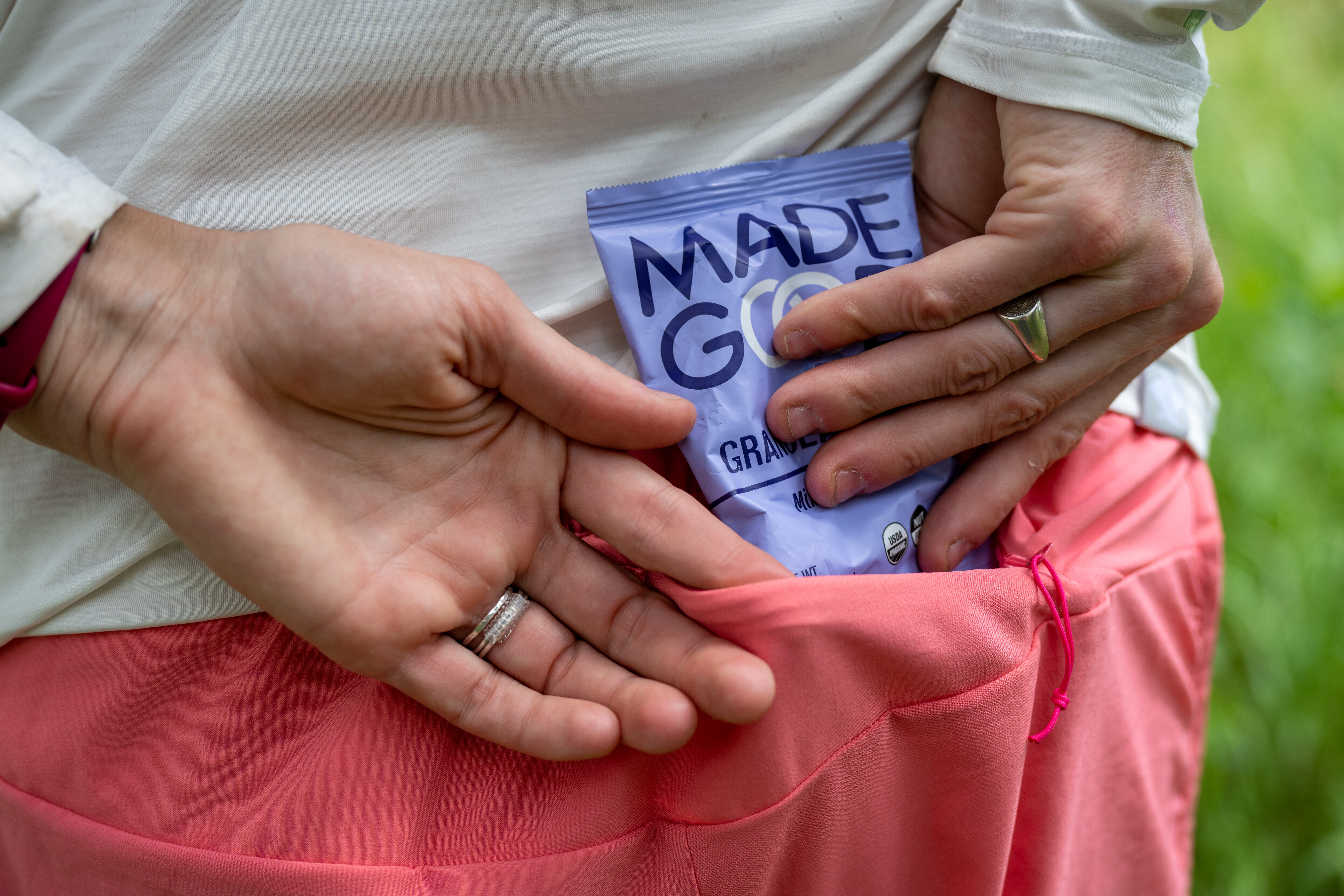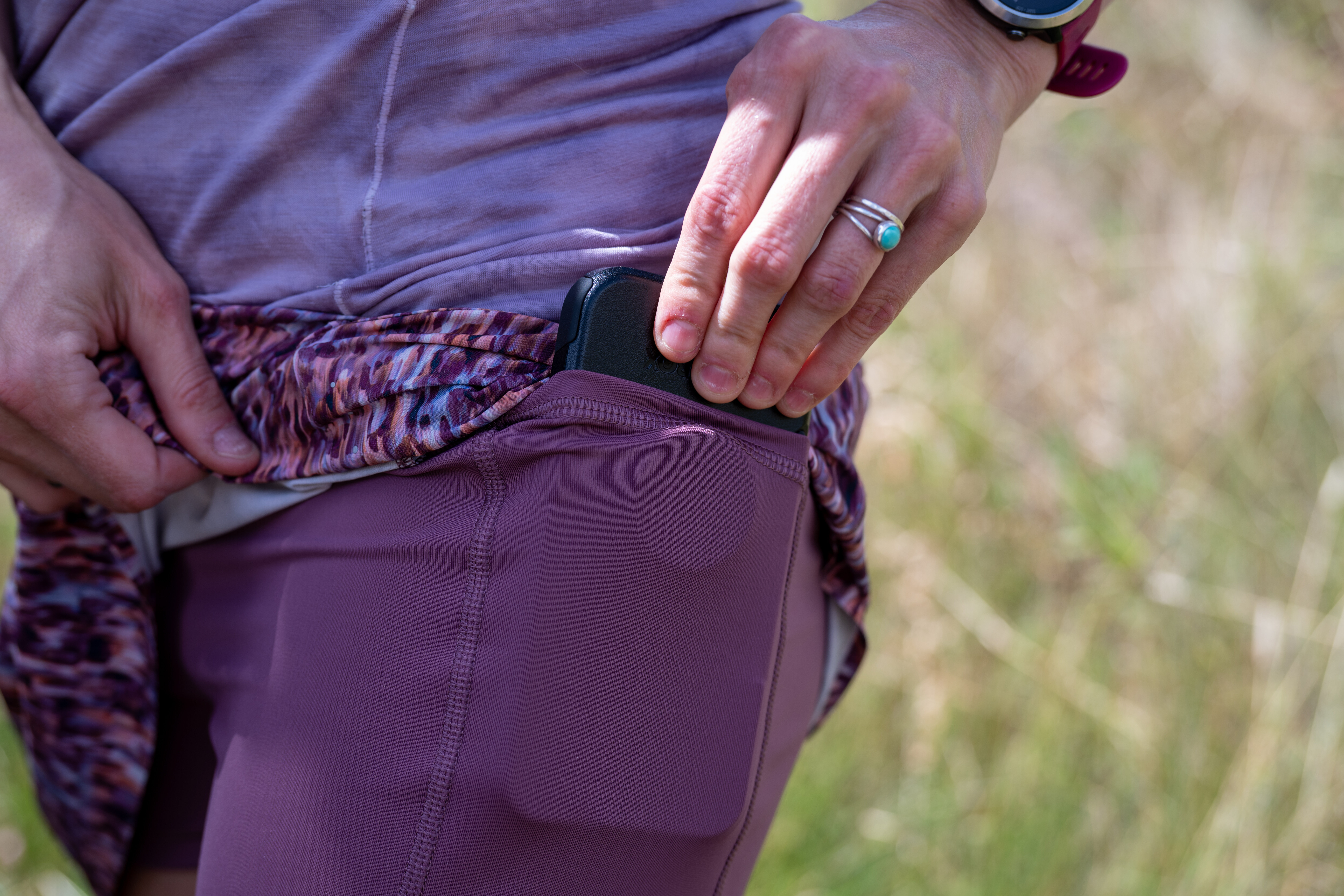 Larger thigh pockets are great for daily wear, but they become useless while running. Who wants a bunch of stuff bouncing off their legs? So don’t worry much about big pockets on the thighs. They usually don’t hurt, and do come in handy for post-run life like a stop in a coffee shop. But you won’t use them while running. Unless — here’s the kicker: it’s a loose pair of shorts with built-in compression shorts underneath and pockets. The more elastic, the more compression, the better those pockets are.