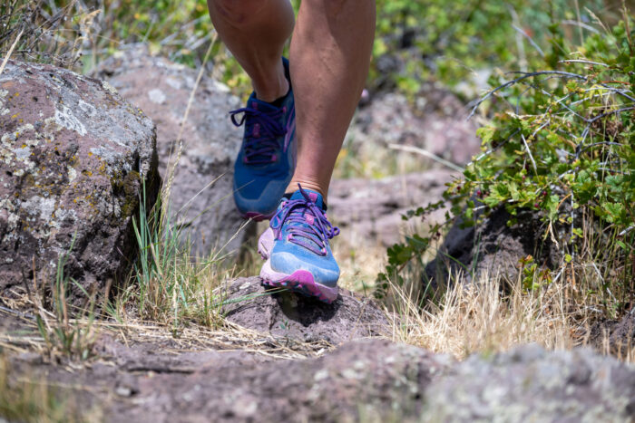 To test these women’s trail shoes, we ran on a range of trails from buttery singletrack to rocky technical peaks and wet, muddy surfaces. During these runs, we paid careful attention to comfort, stability, outsole traction and grip, and durability. Our team tested each pair on long runs, tempo runs, and hill sprints. We inspected the shoes after each run to see if there was any visual wear and tear.
