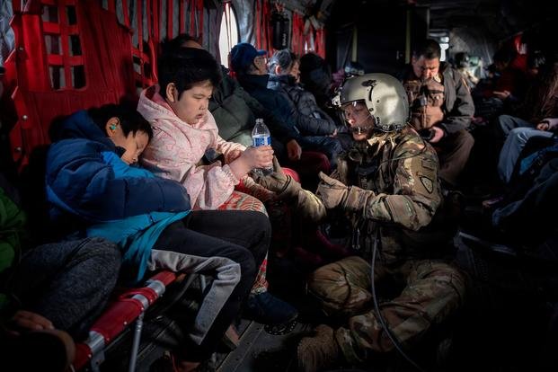 Anchorage leaders said Friday they expect as many as 1,600 evacuees to arrive. So far about 575 have been airlifted to the city by the Alaska National Guard, and have been staying at a sports arena or a convention center. Additional flights were expected Friday and Saturday.