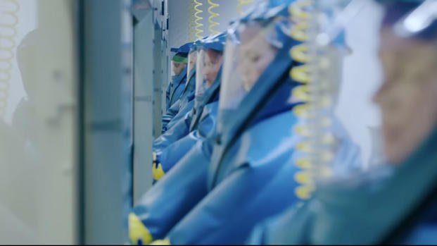 Apple’s key art features a petri dish and a Q-tip etching a smiley face into the yellow goo. The tagline accompanies it: