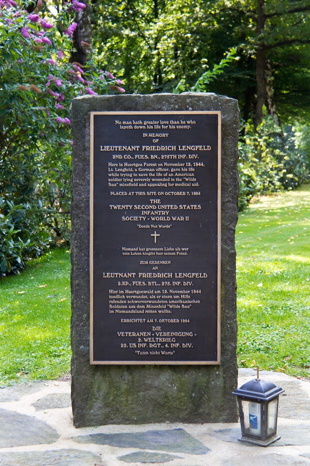 On Oct. 7, 1994, retired Maj. Gen. John Ruggles led American veterans to Hurtgen War Cemetery to dedicate a monument to Lengfeld. Ruggles had served as a lieutenant colonel with the 22nd Infantry Regiment during the battle. The 22nd sustained some of the highest casualties of any single regiment in the Hurtgen campaign.