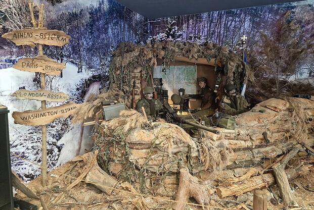 The outpost itself consisted of a network of trenches deep enough for soldiers to move unseen, connecting reinforced bunkers, a command post and forward observation positions. The communication trench ran 400 yards from the supply point at the rear up to the hilltop, where it joined a circular trench system with fortified fighting positions. The entire position could accommodate roughly 150 infantrymen — a single company rotating in and out each night.