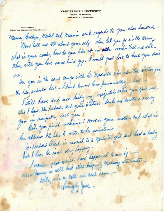 Stationed at Fort Huachuca in Arizona, Ray started writing letters to Jane, who was working as a medical lab technician at Vanderbilt University. Those letters, almost a century old, were found in a Nashville home that once belonged to Jane and her siblings. They were donated in 2016 to the Metro Nashville Archives, paving the way for the Nashville Public Library to put the letters on digital display.
