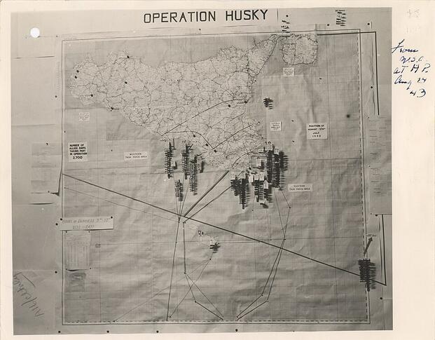 Operation Husky began July 10, 1943. More than 150,000 Allied troops landed on Sicily’s southern coast in the largest amphibious assault of the war. Lieutenant General George Patton commanded the U.S. Seventh Army while British General Bernard Montgomery led the Eighth Army.