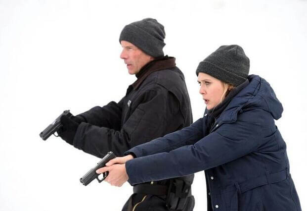 Michael Mann (again) stages a tight two- to three-second sequence that instructors love to freeze-frame. Presentation from concealment, controlled strings, target transitions, and immediate weapon retention are all there—clean, efficient, and believable. It’s brief, but it’s the closest many films get to how competent shooters really work.
