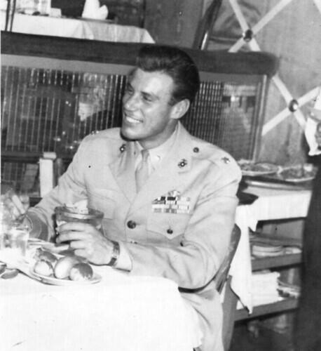 Peter Ortiz at a dinner after World War II. The most decorated member of the OSS earned two Navy Crosses, five Croix de Guerre and decorations from three countries for his covert operations in occupied France. (Marine Corps History Division)