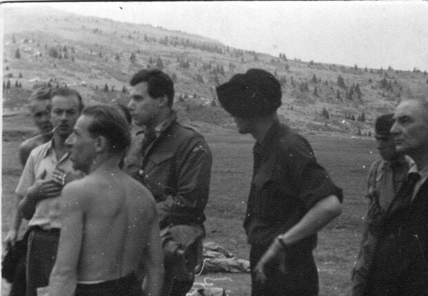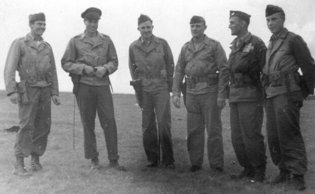 Maj. Peter Ortiz with his Operation Union II team the day after parachuting into occupied France on Aug. 1, 1944. The mission ended two weeks later when Ortiz surrendered to save the village of Centron from German reprisals. (Marine Corps History Division)