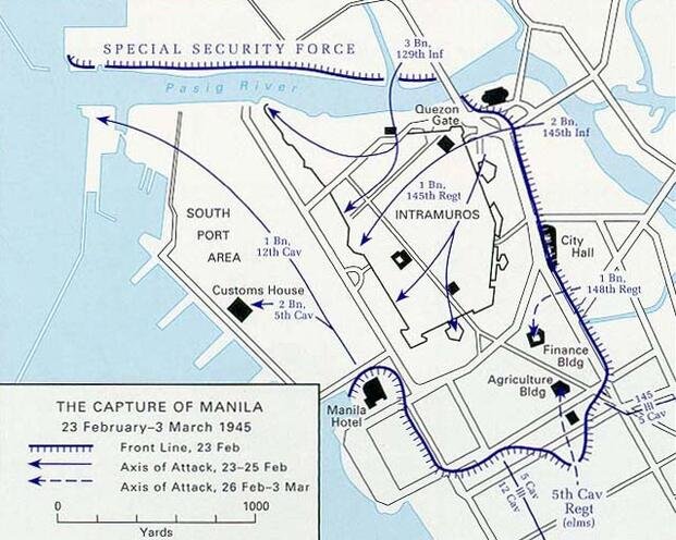 Troops from the 1st Cavalry began pouring in from the south and east, facing fierce resistance from Japanese defenders. Across the city, the 37th Infantry had to move methodically against prepared Japanese defenses. Enemy snipers, anti-tank guns and machine guns waited around every corner.