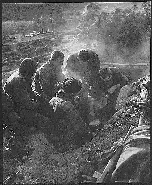 Soldiers from the 7th Infantry Regiment cooking rice during a lull in the fighting during the Korean War. (Wikimedia Commons)