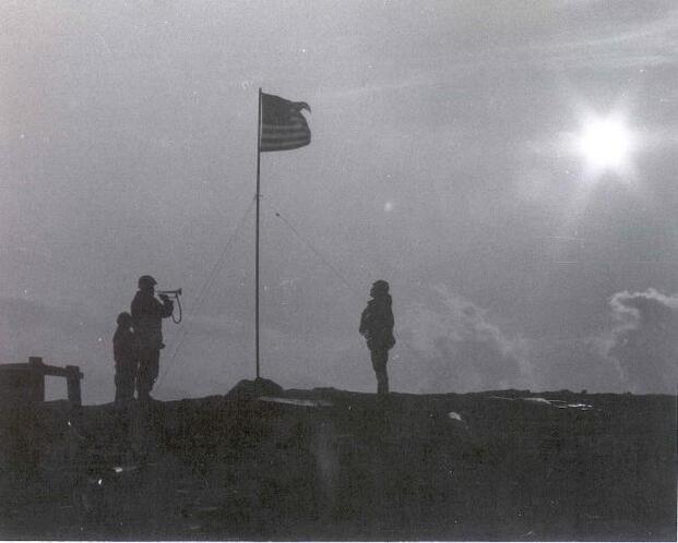 Every morning, three volunteers dashed from their fighting holes to a makeshift flagpole fashioned from a radio antenna. Two hoisted the colors while the third played ‘To the Colors’ on a battered bugle, standing at attention even as enemy rounds cracked overhead. Each evening, the Marines lowered the flag.