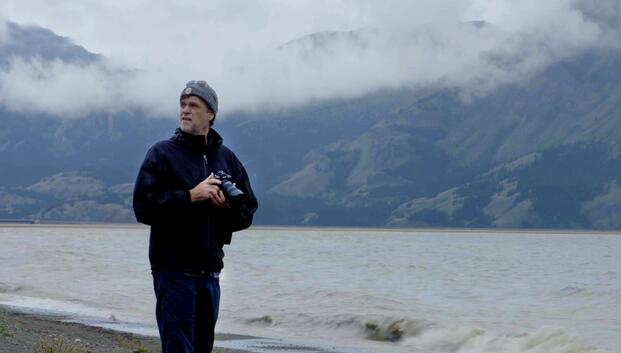 Andrew Gregg along the shore of a lake in the Yukon during the production of the documentary, “Skymaster Down.” (Skymaster Productions)