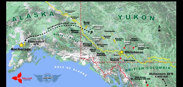 The estimated flight path of the Skymaster along the Alaska-Canada Highway. (Ted Parks, Skymaster Productions)