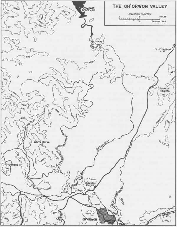 Map of the Ch’orwon Valley, with the location of White Horse Hill. (Korean War Online)